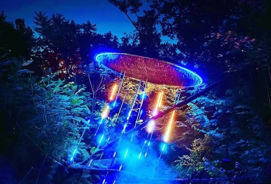 This enchanting walk invites guests to slow down and fully immerse themselves in a celestial pathway filled with shimmering lights, glowing installations, and dreamlike soundscapes that blend seamlessly with the surrounding gardens. Each section of the trail feels intentional and cinematic, unfolding like chapters of a story and encouraging moments of reflection, wonder, and awe. It’s especially popular for date nights, intimate outings with friends, and anyone seeking a unique and calming evening escape.